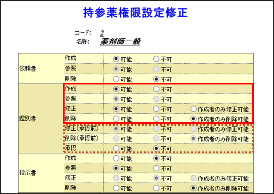 A 下記設定により、権限毎に「鑑別書の作成権限」を付与することで作成が可能です。
