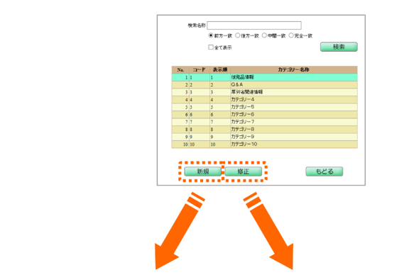 カテゴリーを選択後、[修正]をクリックします。カテゴリー名称を変更し、[修正]を選択します。