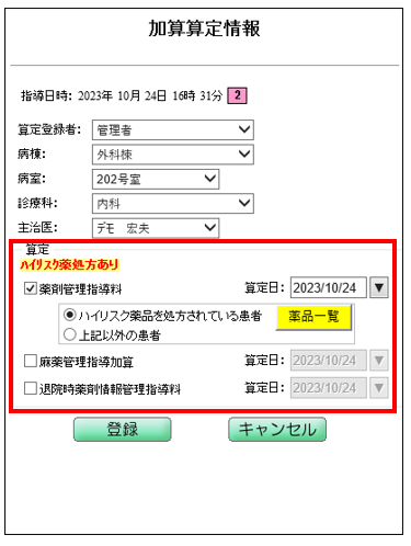 ※薬歴画面を一度閉じ、再度開いた画面で算定日が登録されていることをご確認ください。
