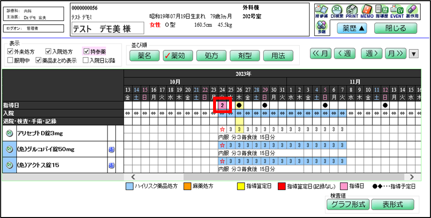 2. ボタンから、該当患者の薬歴カレンダーを表示します。