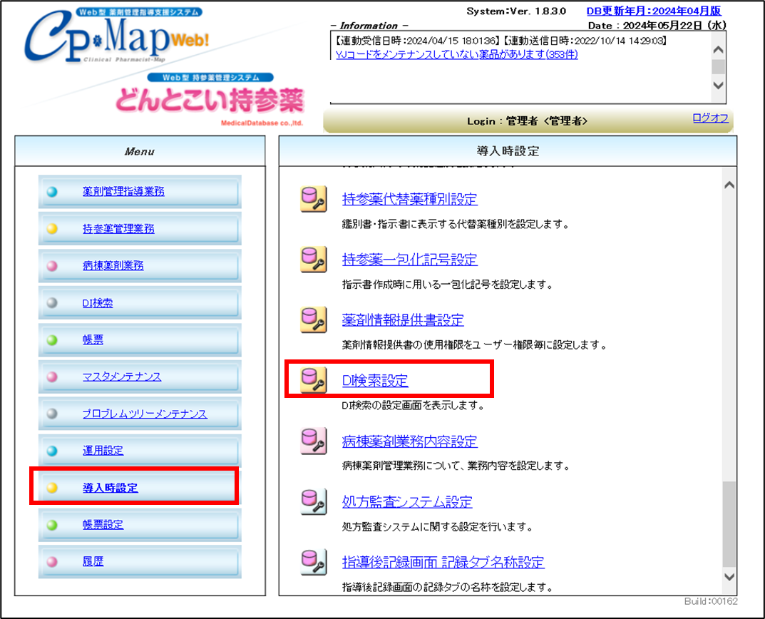 1. [導入時設定] - [DI検索設定]をクリックします。